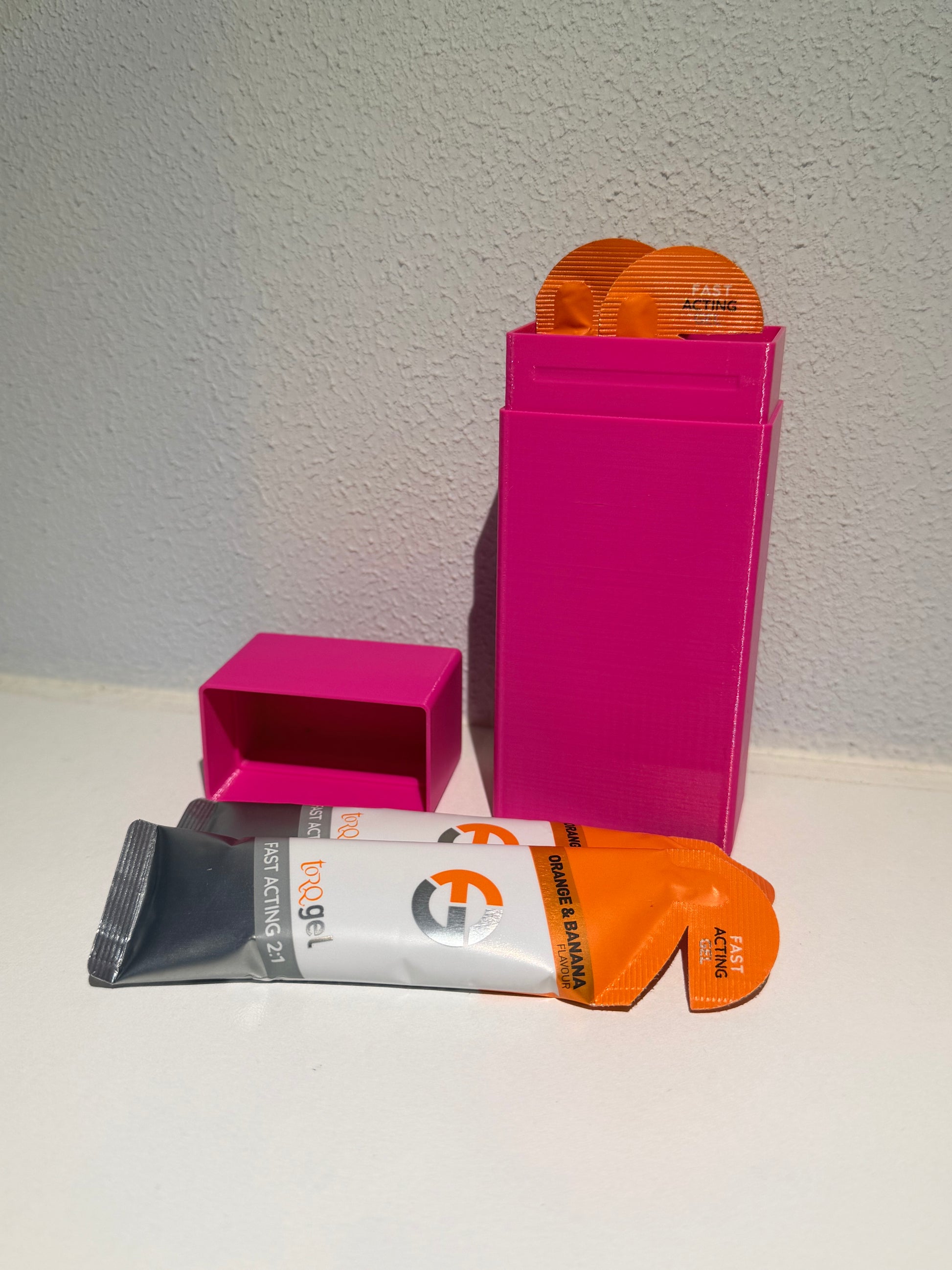 Dextro Energy Liquid Gel Houder is speciaal gemaakt om jouw Gel verpakking heel te houden in jouw tas, gaan last meer van lekkende verpakkingen. Maar altijd zonder verassingen de Dextro Energy Liquid Gel paraat voor als jij hem het hardste nodig hebt! Duurzaam en nauwkeurig gemaakt: De houder is vervaardigd met 3D-printtechnologie, waardoor kleine oneffenheden in het oppervlak kunnen voorkomen. Dit heeft geen invloed op de kwaliteit of functionaliteit, en garandeert een stevige en betrouwbare constructie.